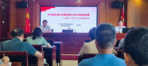 李尚清以《为中国式现代化提供强大动力和制度保障——党的二十届三中全会精神解读》为题,围绕三中全会“全面深化改革”这一核心任务,阐述了改革的重大意义、框架设计、主要内容和基本举措,帮助干部职工在理论层面上理解了为什么要进一步全面深化改革,以及改什么和怎么改的问题。他还提出了在学习《决定》当中,需要注意把握的几个方面,阐述了《决定》提出的重大改革措施,强调了党的全面领导是进一步全面深化改革的根本保证。