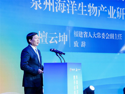 檀云坤在致辞中表示,海洋生物医药产业发展迅猛,产业增加值年均增速达13%以上,已成为海洋经济新的增长点。泉州市委、市政府高度重视发展海洋经济,近年来已构建起富有竞争力的海洋渔业、临港工业、海洋新兴产业、海洋服务业等四个现代海洋产业体系。在建的泉州海洋生物产业研究院,引入薛长湖院士团队,将搭建海洋科技成果转化中试孵化桥梁,构建海洋生物资源高值化利用全链条科技创新体系,将资源优势转化为产业优势,辐射带动我省海洋生物医药产业做大做强。