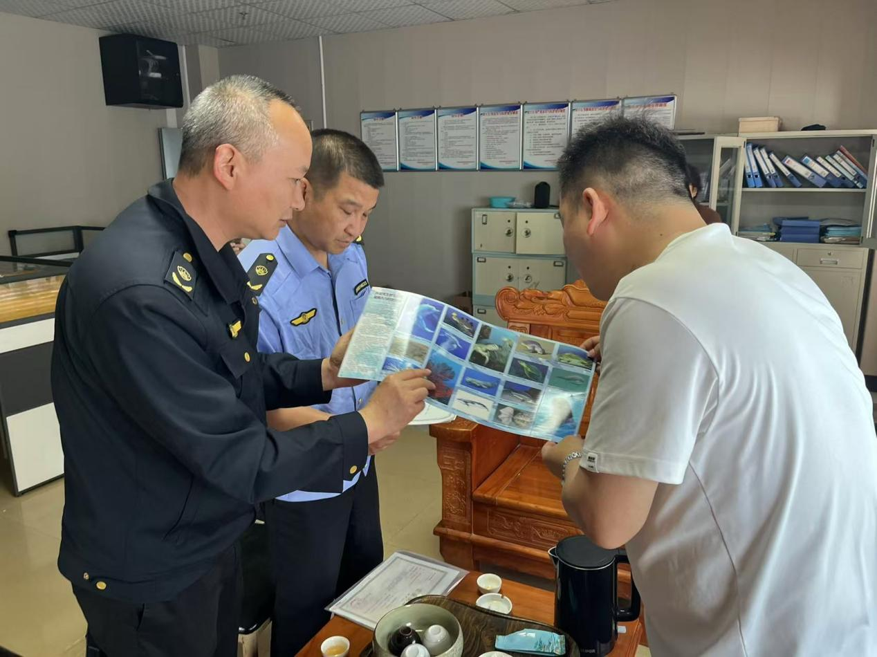 检查过程中,执法人员同步开展普法宣传,向经营者和周边群众发放水生野生动物保护宣传手册,讲解《中华人民共和国野生动物保护法》《水生野生动物保护实施条例》《国家重点保护野生动物名录》等相关法律法规,普及常见保护动物知识,倡导经营者合法合规经营,呼吁群众积极参与监督,共同守护水生野生动物生存环境。